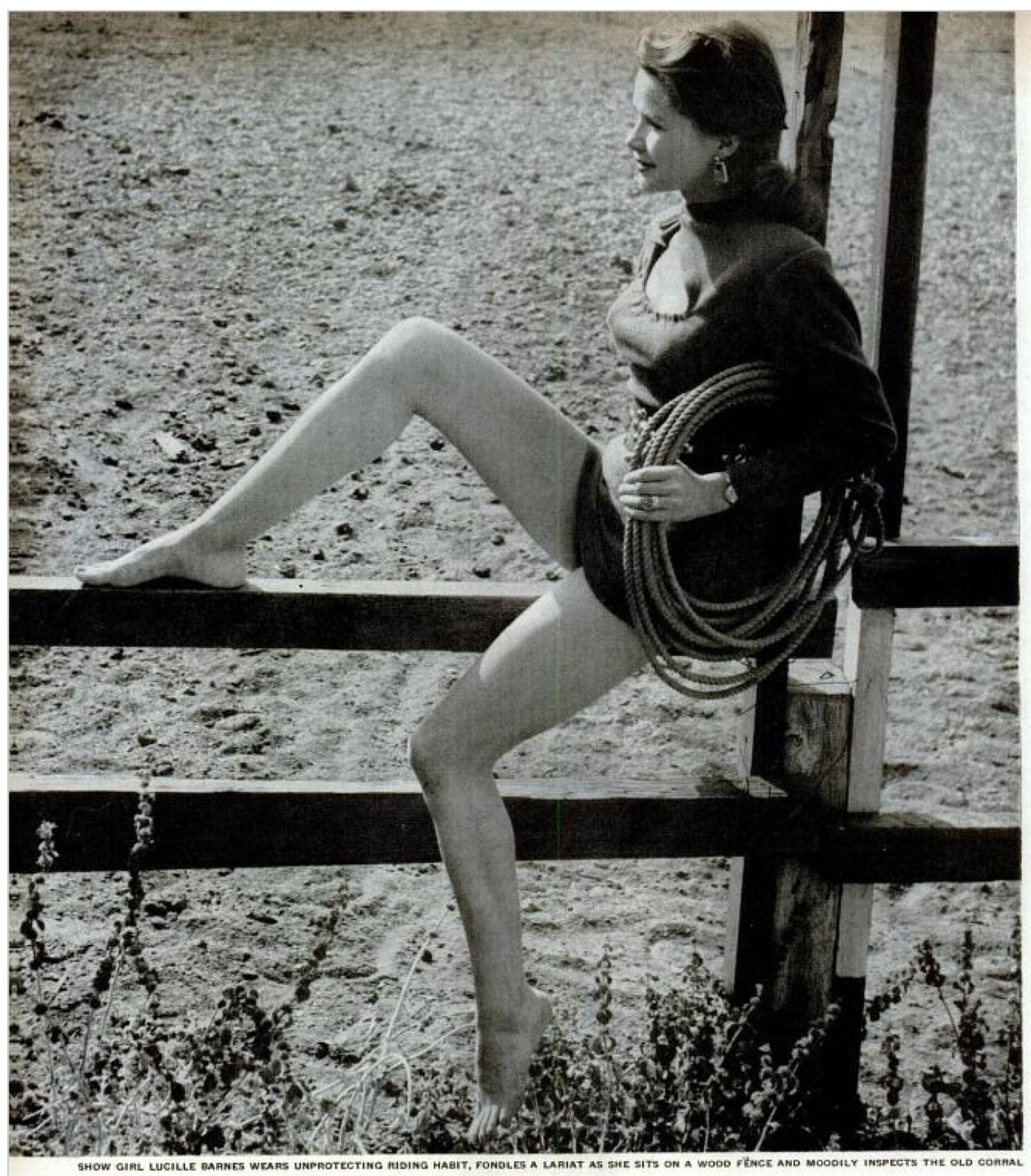 It is hard to know what readers who stuck with Chambers until the bitter end might have thought about how Mme. de Gramont dealt with the question that had been posed to her.  It is even harder to know what Chambers himself, aware that he was about to appear before a Congressional committee and face other questions, might have thought about her fate.  What is clear is that when his readers finished his article and turned the page they would be greeted by the picture of a leggy “show girl”, perched on the railing of a wooden fence, lariat in hand, and an article that begins